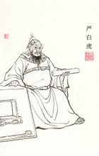 严白虎(白虎为其绰号,本名不详),江东山贼,聚众万余人,屯于吴郡乌程,被孙策剿灭。